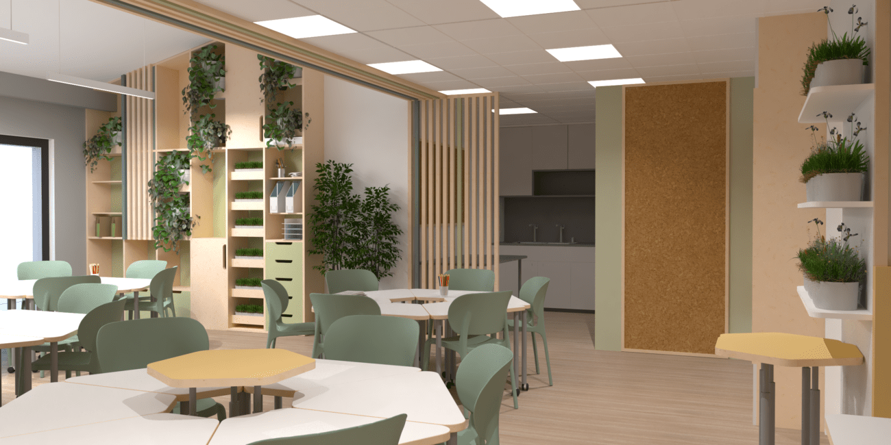 Tworzymy sale warsztatowe, które inspirują do twórczości i nauki przez działanie. Projektujemy przestrzenie dostosowane do różnych aktywności od zajęć plastycznych po warsztaty kulinarne czy naukowe.