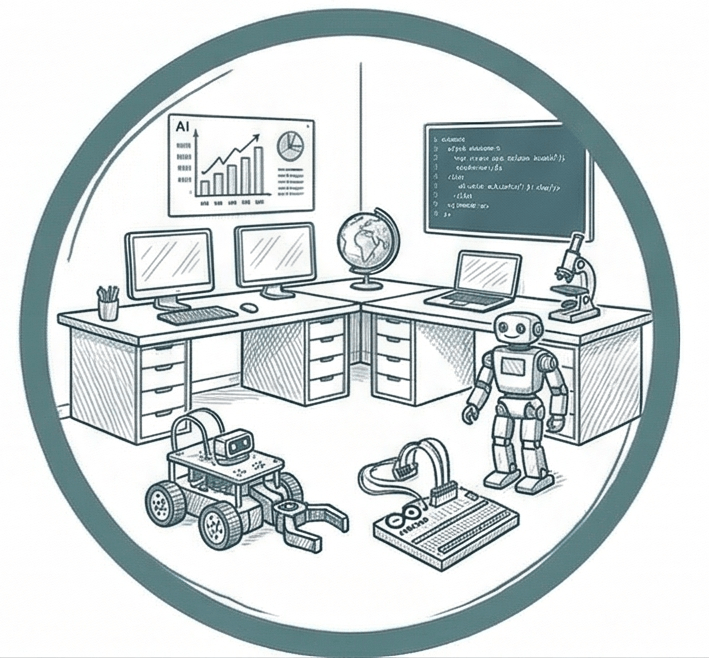 Tworzymy nowoczesne przestrzenie edukacyjne, które wspierają rozwój kompetencji przyszłości — logicznego myślenia, kreatywności i pracy z technologią. Projektujemy sale STEM i AI jako miejsca do realnego działania, a nie tylko pokazów.