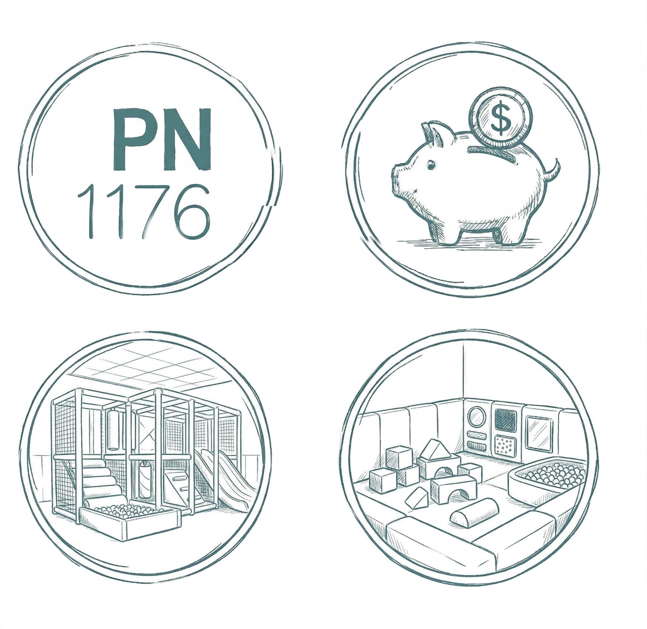 Dobór atestowanego wyposażenia: Wybór bezpiecznych konstrukcji zabawowych, mebli, miękkich paneli ściennych oraz zabawek edukacyjnych od sprawdzonych producentów.